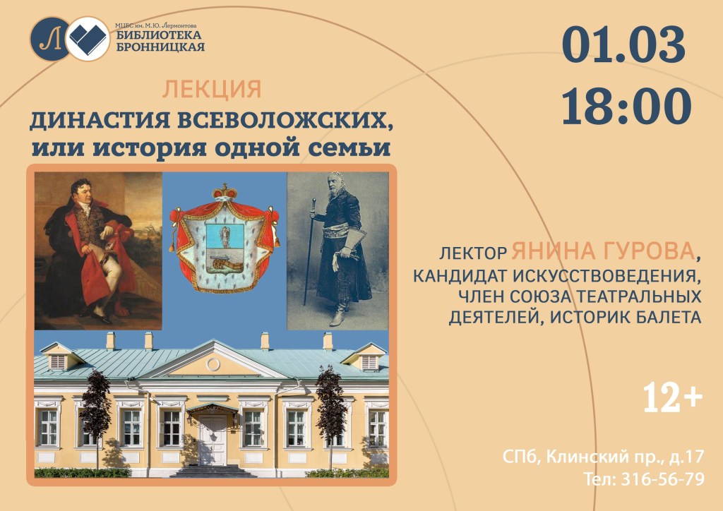 9 ноября в 18:00 в библиотеке «Бронницкая» (ул. Бронницкая, д.16/17) состоится лекция «Императорский балет в окружении Семеновского полка, или Разве можно верить пустым словам балерины»