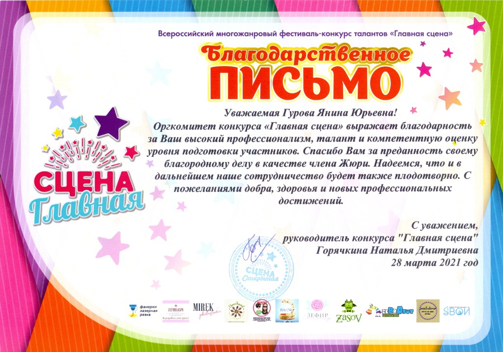 Член жюри Всероссийского фестиваль–конкурса талантов «Открытая сцена». 28 марта 2021 г. Санкт–Петербург, Россия.