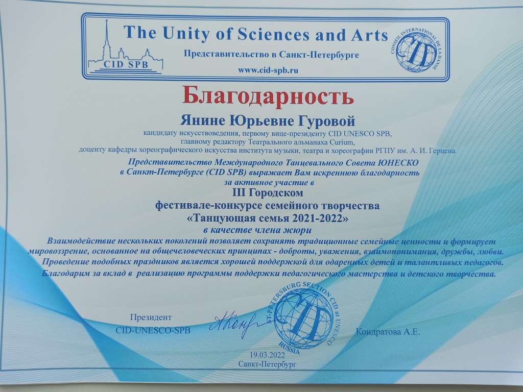 Член жюри Всероссийского фестиваля–конкурса педагогического мастерства «Диалог искусств». 28 марта 2019 г., Санкт-Петербург, Россия.