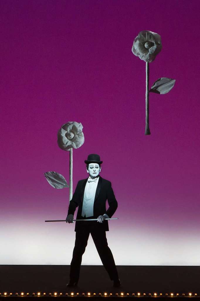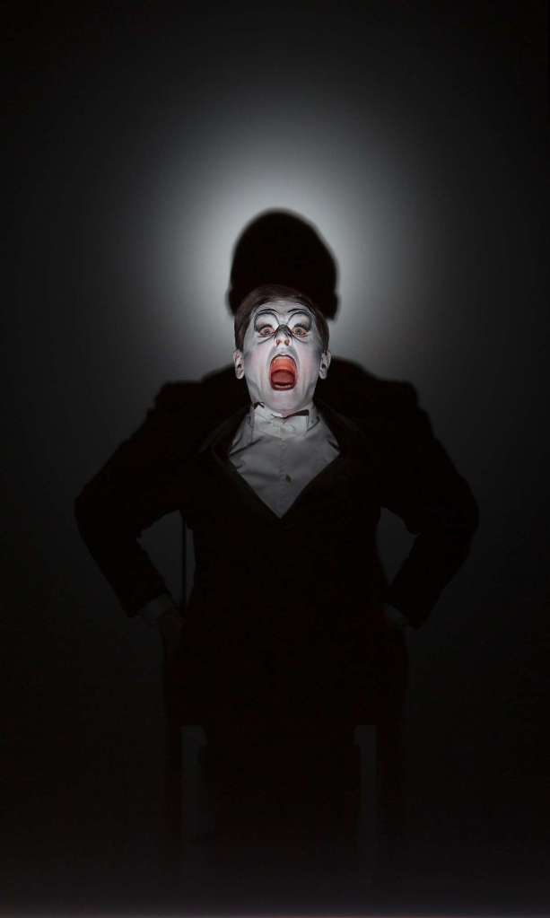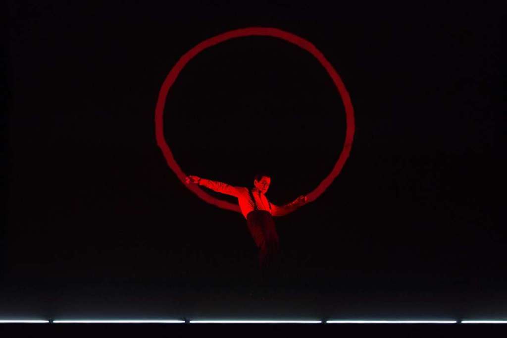 Мгновение спустя, после размышлений о Боге и любви к собственной жене, уже совершенно изможденный душевными терзаниями герой сидит на подвешенном стуле вниз головой. Он пристально смотрит в зал, продолжает философствовать о вечном, но вот его мировоззрение во всех смыслах иное. Поразительно, но голос артиста звучит умиротворенно, не сбивается дыхание, он говорит, так как танцует, легко и непринужденно.