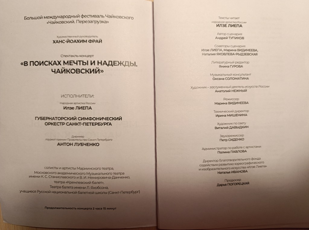 В Санкт-Петербурге состоялась премьера уникального спектакля-концерта с участием Илзе Лиепы, звёзд балета и Губернаторского симфонического оркестра Санкт-Петербурга в рамках Большого международного фестиваля Чайковского «Чайковский. Перезагрузка»